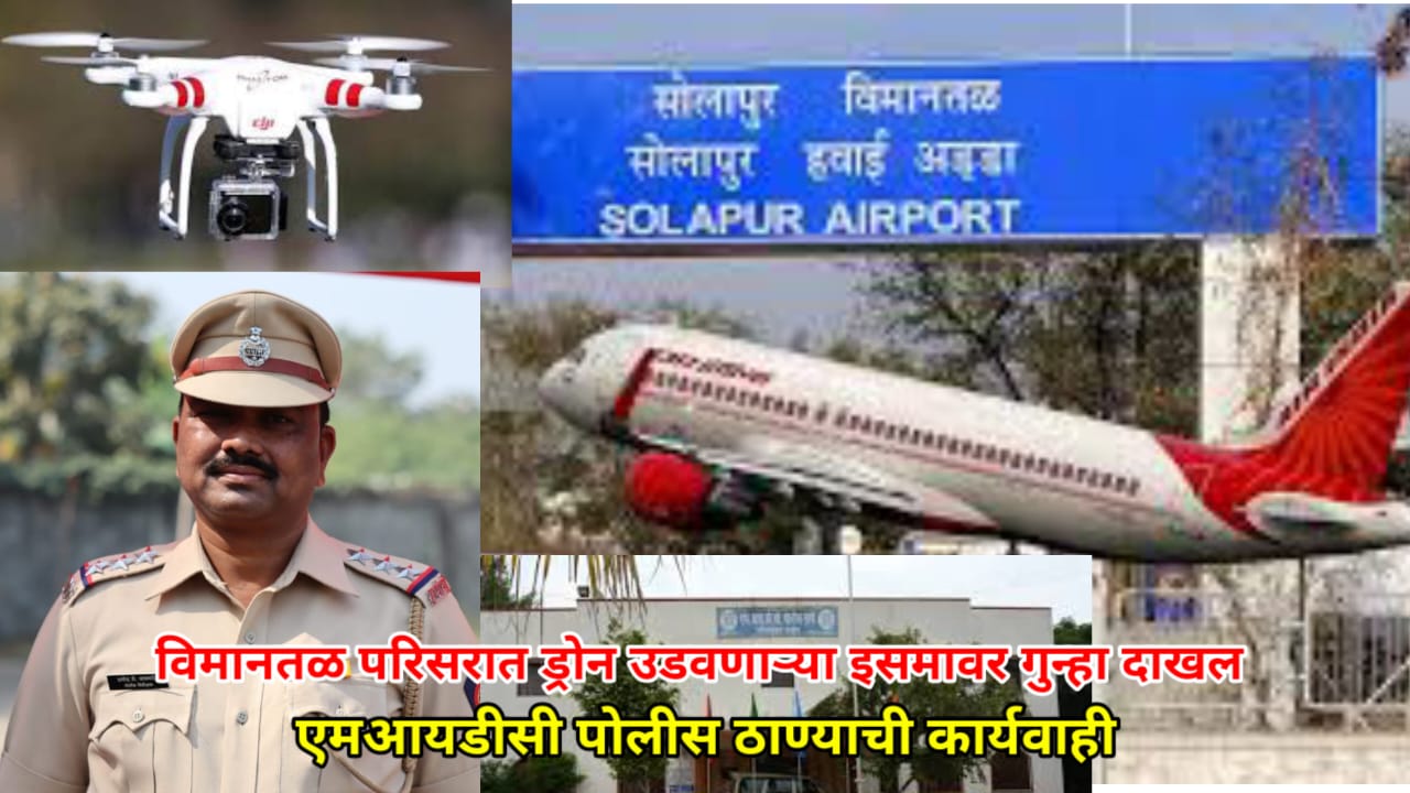 सोलापूर ( प्रतिनिधी ) विमानतळ परिसरात ड्रोन उडविणाऱ्या दोन इसमांवर एमआयडीसी पोलीस ठाण्यात गुन्हा दाखल करण्यात आला. सोलापूर विमानतळ हे प्रतिबंधित क्षेत्र घोषित केलेले असुन सोलापूर शहरात मा.पोलीस
