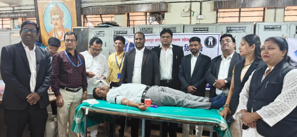 महामानव डॉ. बाबासाहेब आंबेडकर यांच्या महापरिनिर्वाण दिनानिमित्त डॉ.बाबासाहेब आंबेडकर विधी मंच व सोलापूर बार असोसिएशन यांच्या संयुक्त विद्यमानाने रक्तदान शिबिर संपन्न.