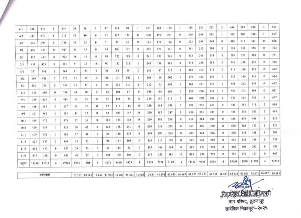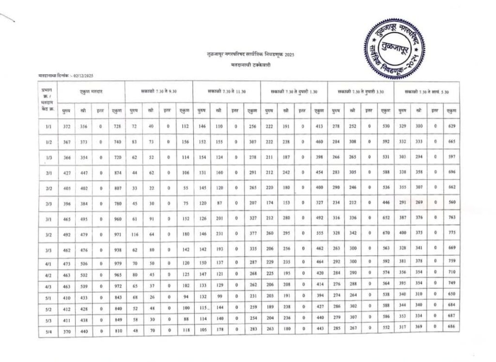 तुळजापूर नगरपरिषद निवडणूक : विक्रमी ८०.२८ टक्के मतदान,
