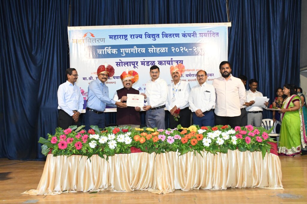या कार्यक्रमात सोलापूर मंडल अंतर्गत सन २०२५-२६ मध्ये उत्कृष्ट कामगिरी केल्याबद्दल पंढरपूर विभाग कार्यालय तसेच मंगळवेढा उपविभाग (प्रथम), अक्कलकोट-२ (द्वितीय) आणि नातेपुते उपविभाग (तृतीय) कार्यालयांचे अभियंते, अधिकारी व कर्मचाऱ्यांचा गौरव करण्यात आला. तसेच तीन उत्कृष्ट शाखा अधिकाऱ्यांचाही गौरव करण्यात आला.